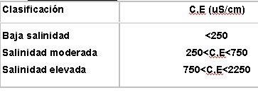 • Clasificación de las aguas para fines agrícolas según su salinidad (USDA):