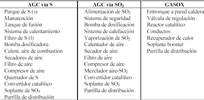Resulta ilustrativo realizar una comparación entre los equipos principales que necesitan las unidades de AGC convencionales y los de una planta GASOX. Estas diferencias se detallan en la tabla siguiente: