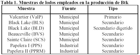 El presente trabajo muestra los resultados de la investigación realizada para obtener B. Thuringiensis variedad kurstaki HD-1 (Btk) empleando como sustrato alternativo diversos tipos de lodos residuales.