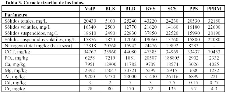 Se realizó la determinación de sólidos totales, sólidos suspendidos y volátiles de acuerdo al procedimiento descrito en APHA20. La determinación de metales se realizó por la técnica de ICP (inductively coupled plasma, por sus siglas en inglés, Atom Scan Modelo 25). El fósforo y nitrógeno total, así como la concentración de carbón orgánico se determinaron empleando un autoanalizador Technicon II y aplicando las técnicas 424 G, 417 G y 505 B indicadas en APHA20. La determinación del material disuelto se realizó después de haber pasado la muestra a través de filtros de 0.45 ìm. El pH se determinó empleando un potenciómetro Fisher Accumet 805 MP.