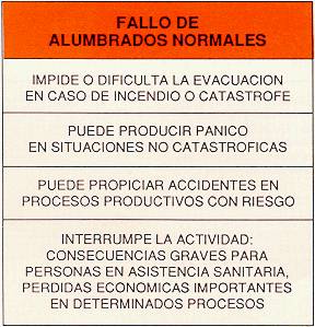 No es infrecuente que en centros de trabajo, locales de pública concurrencia, hospitales, etc., las instalaciones de alumbrado de emergencia y señalización, no reúnan las características técnicas necesarias para responder debidamente frente a un fallo de los alumbrados normales.
