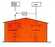 Fig. 1: Conexión de los aparatos autónomos sobre la instalación de los alumbrados normales del área que cubren |