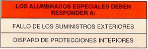 Los alumbrados especiales tienen por objeto corregir los riesgos que pueden derivarse de un fallo imprevisto de los alumbrados normales, restableciendo inmediatamente un nivel de iluminación adecuado, ya sea en centros de trabajo o en establecimientos con público.