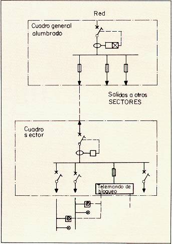 En el caso de que la instalación deba quedar sin tensión, deberán adoptarse medidas para bloquear la entrada en servicio de los aparatos autónomos durante esos períodos, puesto que entrarían en servicio innecesariamente agotando diariamente los acumuladores por lo que quedarían inservibles durante el siguiente período de carga, además de acortar considerablemente su vida. Esto puede conseguirse utilizando un telemando de bloqueo y aparatos autónomos adecuados (Fig. 8).