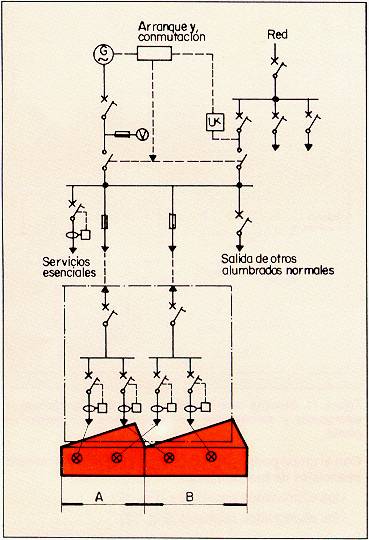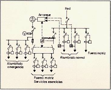 Fig. 13: Grupo electrógeno para alumbrados normales dispuestos en doble circuito