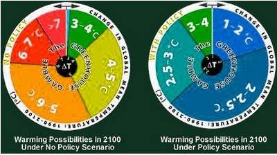 Para hacer realmente obvio que el trabajo está dirigido a la gente superficial en los medios de prensa y no a los científicos, ellos han incluido esta “ruleta del clima” definiendo sus probabilidades de tener uno u otro aumento del calor dependiendo de su elección en la adopción de algunas “políticas.”