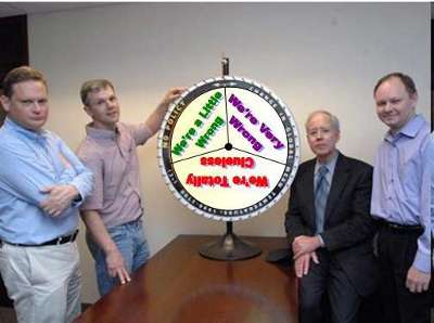 ____________________________________________________________________________________NOTA DE FAEC: El gráfico de arriba, una “ruleta del clima” para las Tómbolas y Kermeses del IPCC, que los autores del MIT muestran orgullosos en una foto para la prensa, en realidad debe ser corregida como lo hizo el meteorólogo Roy Spencer en su artículo “La tómbola del Clima”: