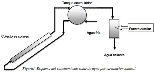 La instalación típica para el calentamiento solar de agua se compone de colectores planos, un tanque de almacenamiento y cañerías de distribución del fluido, disponiéndose además de una fuente de energía térmica complementaria (Figura 1).