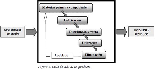 El ACV de un producto debería incluir todas las entradas/salidas de los procesos que participan a lo largo de su ciclo de vida: la extracción de materias primas y el procesado de los materiales necesarios para la manufactura de componentes, el uso del producto eventualmente su reciclaje y/o la gestión final. El transporte, almacenaje, distribución y otras actividades intermedias se incluyen cuando tienen la relevancia suficiente (Figura 3).