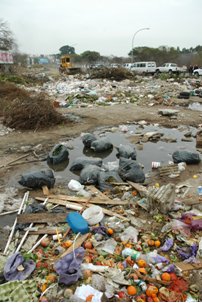 ![]() Fig 2. Vertido de residuos a cielo abierto en la cuenca el río Reconquista. |
