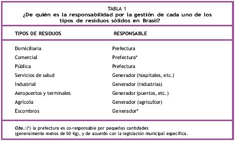 En este Manual se adoptará la clasificación por su origen, es decir, domiciliarios, comerciales, barrido de ferias, servicios de salud y hospitalarios; puertos, aeropuertos y terminales ferroviarias o rodoviarias, industrial, agrícola y escombros. La descripción de estos tipos de residuos se presenta a continuación. Luego se comenta la responsabilidad de su gestión. Finalmente se exponen los criterios que se utilizan para definir la peligrosidad de un residuo.