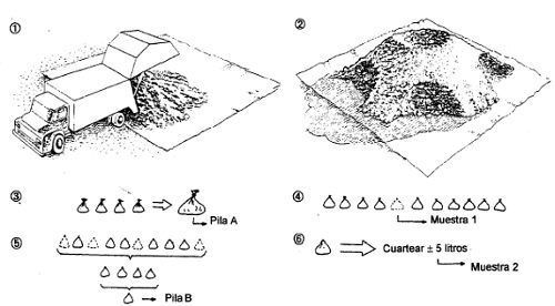 El órgano de control ambiental de San Pablo, Brasil, CETESB10, recomienda dos procedimientos de muestreo, que se describen en las Figuras 1 y 2, de acuerdo con el tipo de análisis que se deba realizar. En tales procedimientos, se utiliza el proceso de cuarteamiento.