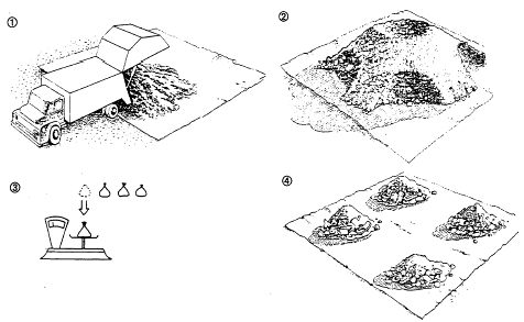 3) Hacer el ” montón A” con el material muestreado, mezclado y homogeneizado al máximo posible.