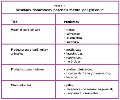 En relación a otros residuos potencialmente peligrosos, las baterías, pilas, lámparas fluorescentes y envases de aerosoles son los que están mayoritariamente presentes en los residuos sólidos municipales, especialmente en las ciudades grandes(Tabla 3).