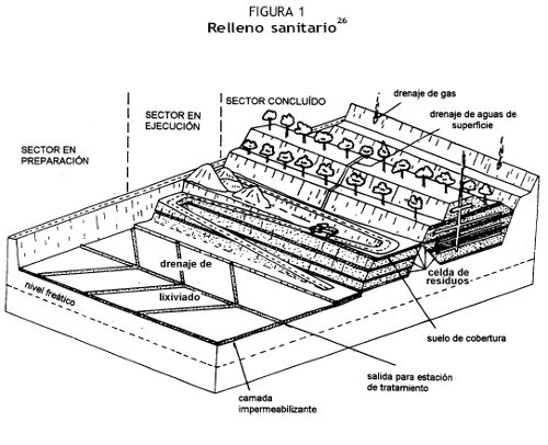 Es por lo tanto una “forma de disposición final de residuos sólidos urbanos en la tierra, a través de su confinamiento en capas cubiertas con materia inerte, generalmente tierra, según normas operacionales específicas, de modo de evitar daños o riesgos para la salud pública y la seguridad, minimizando los impactos ambientales”.3 (Figura 1)