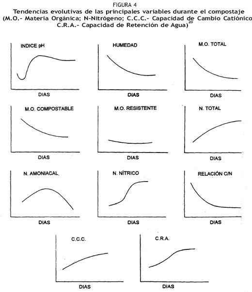 La evolución de las principales variables durante el compostaje, sigue la tendencia presentada en la Figura 4.