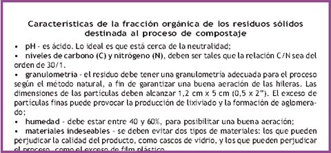 - características del proceso escogido (rendimientos, pérdidas, tiempo de compostaje y necesidad de espacio);