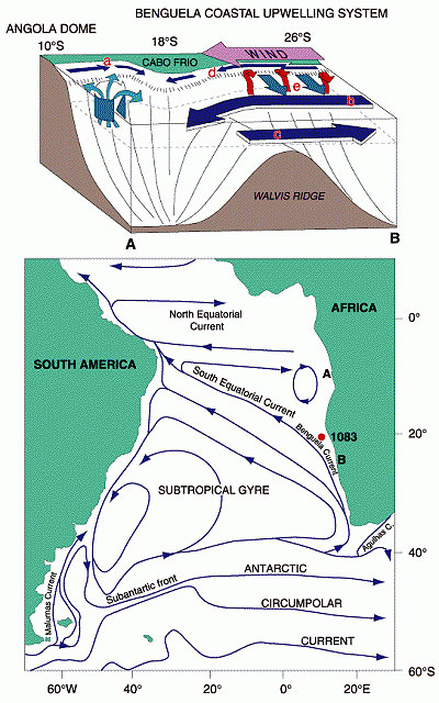 Condiciones meteorológicas anormales en el Atlántico occidental tropical (vientos alisios más débiles, apenas fuera de Brasil), pueden causar el desplazamiento de la parte anterior de la Corriente de Benguela-Angola más hacia el sur, provocando la invasión de aguas cálidas. A causa de la semejanza con el fenómeno de El Niño en el Pacífico (ENOS), este evento cálido del Atlántico Sur fue bautizado como “Niños Benguela”. Estos eventos han suprimido al fenómeno de la elevación de aguas frías (upwelling) y causaron la elevada pluviosidad en Namibia, pero son menos intensos y frecuentes que las de ENOS.