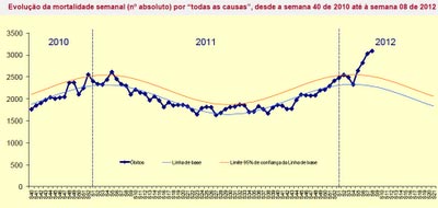 En el blog EcoTretas se comenta hoy la gráfica de la mortalidad absoluta en Portugal desde Octubre del 2010 hasta finales de Febrero del 2012.