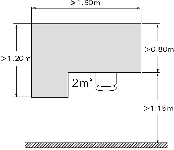 El objetivo a conseguir es disponer del espacio necesario que nos permita movernos con comodidad y sin realizar esfuerzos innecesarios. Es conveniente dejar libre la mayor parte posible del perímetro en contacto con el usuario, tal como refleja el siguiente gráfico.
