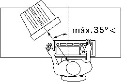 * En el caso de realizar varias tareas (escribir, manipular documentos, atender visitas…), puede colocarse el ordenador hacia un lado, pero siempre de modo que se eviten forzados giros del cuello (superiores a un ángulo de 35º).
