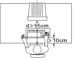 Retrase el monitor todo lo posible. Es muy importante que entre la pantalla y los ojos haya una distancia mínima de 55 cm. |