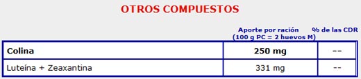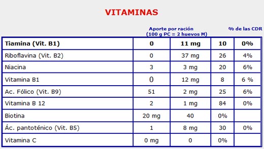 Les adjuntamos abajo una tabla de los compuestos nutritivos, vitaminas y minerales que nos proporcionan los huevos de gallina y traten de encontrar un alimento que nos proporcione, él solo, el valor nutritivo que nos proporciona el huevo. Como dato curioso, aunque podrían existir otros casos de mayor longevidad, es el de Thomas Parr, nacido en 1483 en Winnington, Shropshire, Gran Bretaña, y enterrado en 1635 después de 152 años y 9 meses. El viejo Parr, en cuyo honor fue dado su nombre al famoso whisky escocés Old Parr, tenía una dieta rica en huevo, y mientras unos dicen que sólo comía dos huevos duros al día, otros dicen que además ingería el producto de su labranza, como carne de oveja, y verduras.