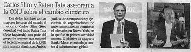 Dos de los hombres con las mayores fortunas del mundo, Carlos Slim y Rajan Tata, son convocados para asesorar a Su Excelencia el Secregeneral de la ONU, el inteligentísimo Bankimún, en su “trabajo contra el calentamiento Global”.