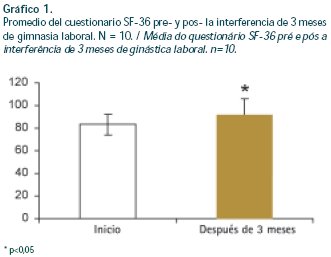 Una vez trazado el promedio general en todas las dimensiones del SF-36, fue encontrado un aumento en el puntaje después del período experimental (Gráfico 1).