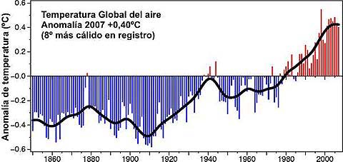 El NOAA dice también que “La temperatura media anual global para las superficies combinadas de tierra y océanos en 2006 fue de 0,54ºC (0,97ºF) por encima del promedio”.