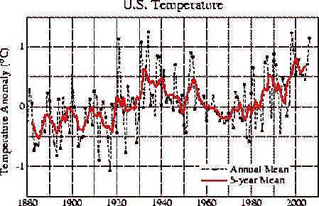 Para los Estados Unidos, la tendencia es menos pronunciada. Tres de los 5 años más cálidos ocurrieron hace unos 80 años atrás. La información fue revisada por el NOAA/NCDC el 1º de mayo, 2007 y la NASA hizo lo mismo en Agosto 2007. Para el NOAA: este nuevo conjunto de datos usa en su mayoría datos rurales y se usan algoritmos para identificar y corregir factores externos como los efectos de isla de calor urbano.