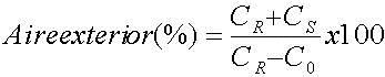 Cs = ppm de CO2 en el aire de suministro (si se mide en un local) o ppm de CO2 en el aire de mezcla (si se mide en la unidad de tratamiento de aire) CR = ppm de CO2 en el aire de retorno Co = ppm de CO2 en el aire exterior Hay dos factores críticos: por una parte, el momento en que se realizan las diferentes medidas, que debe ser lo más coincidente en el tiempo que sea posible y, por otra, que al ser la precisión del resultado directamente proporcional a una diferencia de concentraciones es preferible aplicar el método en periodos de ocupación del edificio para asegurarse de que las diferencias son las mayores posibles. El caudal de aire exterior vendrá dado por el producto del caudal total de aire suministrado por la unidad de climatización y el porcentaje de aire exterior determinado a partir de las medidas de la concentración de dióxido de carbono. Medida del dióxido de carbono en condiciones de equilibrioComo ya se comentó, desde el punto de vista práctico, en ambientes interiores se está tomando como indicador de la calidad de aire interior la concentración del dióxido de carbono producido en la respiración de los ocupantes del edificio y así, si no existe una reducción de su concentración por otro medio distinto de la ventilación, se considera que la ventilación es inadecuada cuando se superan las 1000 ppm de dióxido de carbono. La norma UNE 100-011-91 (Climatización. La ventilación para una calidad aceptable de aire en la climatización de los locales) establece unos caudales de aire exterior para una calidad aceptable de aire en los locales y para controlar la concentración de dióxido de carbono y, paralelamente, olores, partículas y otras sustancias contaminantes, con un adecuado margen de seguridad. Por su parte el Real Decreto 486/1997, de 14 de abril, por el que se establecen las disposiciones mínimas de seguridad y salud en los lugares de trabajo, establece que la ventilación mínima en los locales de trabajo será de 30 metros cúbicos de aire limpio por hora y trabajador, en el caso de trabajos sedentarios en ambientes no calurosos ni contami nados por humo de tabaco, a fin de evitar el ambiente viciado y los olores desagradables. El procedimiento, según la citada norma UNE 100-01191, para establecer la cantidad mínima de aire de ventilación, consiste en aceptar que una persona sana, con una dieta normal, genera una cantidad de dióxido de carbono que viene dada por: