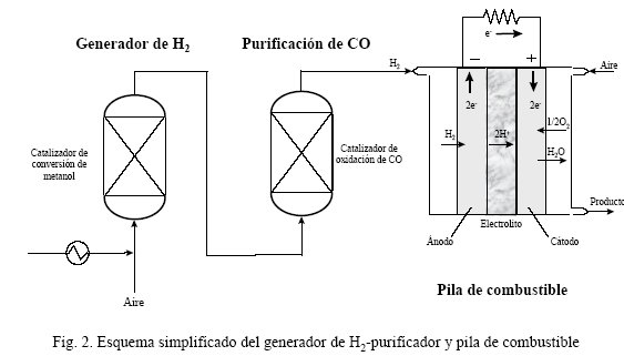 El CO producido, aún en cantidades muy pequeñas, se debe reducir hasta niveles de ppm en la corriente gaseosa que alimenta la pila puesto que el CO es un veneno de la función metálica que actua como electrocalizador en ánodo de la pila.