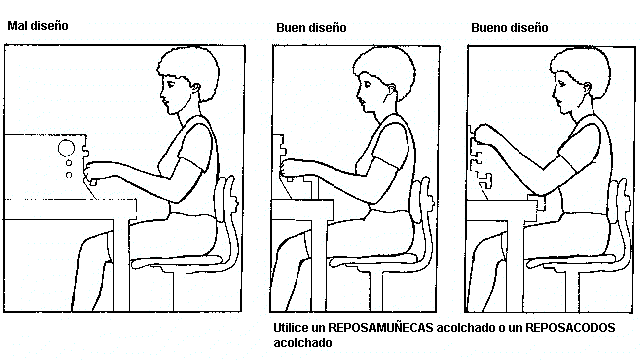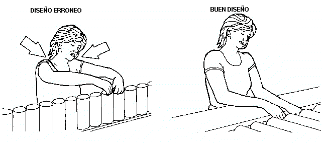 El puesto de trabajo debe ser diseñado de manera tal que el trabajador no tenga que levantar los brazos y pueda mantener los codos próximos al cuerpo.