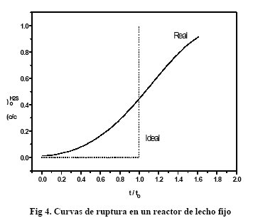 Para un sorbente real, sin embargo, la menor reactividad se pone de manifiesto en la mayor o menor pendiente de la correspondiente curva de ruptura (Figura 4).