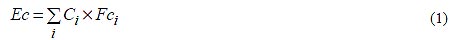 Donde Ec (g/año) son las emisiones (anuales) de dióxido de carbono, C la cantidad de combustible i consumidos en ese período (m3), y Fci es el factor de emisión de CO2 para cada combustible particular (g/m3).