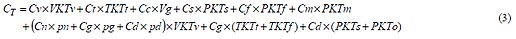 Donde, VKTv son los kilómetros recorridos por vehículo (veh.km) particulares, habiendo una proporción pn(%) para los nafteros; pd(%) para los diesel y pg(%) para los de GNC; TKTt son las toneladas de carga transportadas por camiones (ton.km); TKTf son las toneladas de carga transportadas por FFCC; Vg son los vehículos convertidos a GNC; PKTs son los pasajeros transportados por kilómetro (pas.km) en el sistema público de FFCC; PKTo son los pasajeros transportados por por el sistema público carretero BRT o Bus. Hemos considerado un precio estable de los combustibles para los 40 años, ya que nos interesa una comparación relativa entre alternativas.