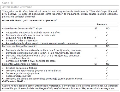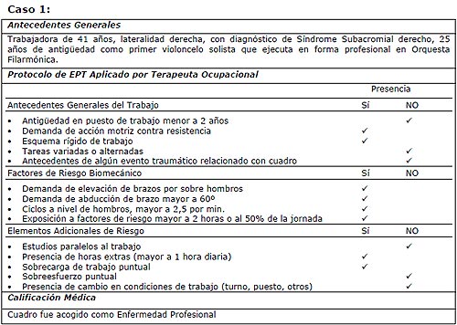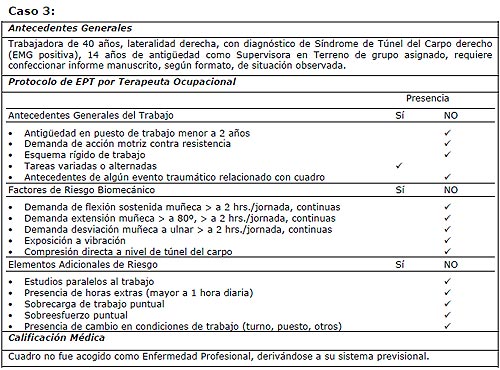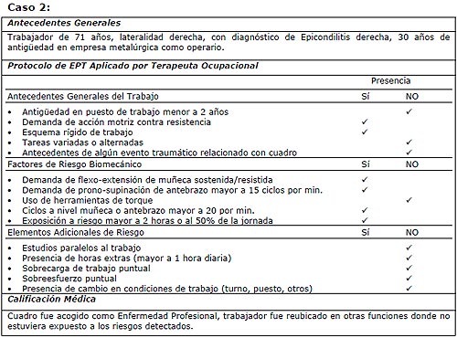 El creciente aumento de consultas médicas por presencia de trastornos músculo-esqueléticos relacionados al trabajo (TMERT) de trabajadores de empresas afiliadas a la Asociación Chilena de Seguridad (ACHS), ha determinado la necesidad de contar con más elementos que apoyen en la calificación de enfermedad profesional (EP), hecho que ha llevado a médicos a solicitar, cada vez más, un Estudio de Puesto de Trabajo (EPT) realizado por Terapeuta Ocupacional, para complementar los exámenes clínicos y/o de laboratorio, que permitan determinar con mayor claridad si existe o no un origen laboral y, de haberlo, detectar cuál o cuáles serían el o los factor(es) gatillante(s).