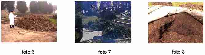 los volteos: se efectuaron 5 volteos durante la etapa termofílica con excepción de la hilera 2 (volteos diarios) empleando una pala frontal (foto 7).