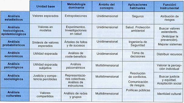 Se pueden identificar (Cuadro 1) las siguientes perspectivas en la concepción y valoración del riesgo: