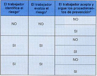 De esta manera, si el trabajador no identifica (percibe) y valora (interpreta) el riesgo tal y como ha estado definido por quienes lo han establecido y han arbitrado las medidas de prevención, es probable que aquel no logre ver el alcance y el sentido de dichas medidas, y, por consiguiente, sus conductas pueden manifestarse poco propicias a la seguridad.