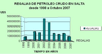 Figura 1: Producción de PETROLEO en la ciudad de Salta desde el año 2000 hasta 2007- Figura 2: Producción de GAS en la ciudad de Salta desde el año 2000 hasta Abril del 2007- Figura 3: Regalías de petróleo crudo en Salta desde 1998 a octubre 2007- |