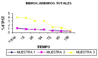 Figura 5: Hidrocarburo totales como (%en ST) en función del tiempo (días) |