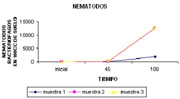 Como es de esperarse al principio la nematofauna presenta una población escasa ya que las concentraciones del contaminante son altas, a medida que este es degradado por los heterótrofos, la población de nematodos aumenta; esto se observa en todas las muestras.