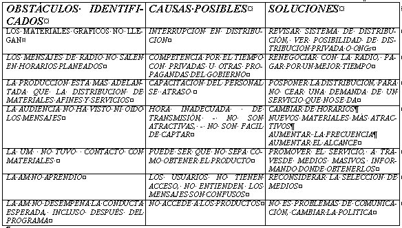 Conforme progresan las actividades de M.A. ambiente se deberán mas servicios, y mejores, las características y las practicas de la audiencia cambiara, por lo tanto será necesario desarrollar nuevos mensajes, y nuevos materiales sobre la marcha, con el objeto de satisfacer las necesi-dades actuales, y futuras de la comunicación.