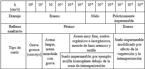 El coeficiente de permeabilidad k de los suelos puede ser determinado en el campo, si es que se desea saber con certeza si ahí se puede construir o no un relleno sanitario (apéndice A).