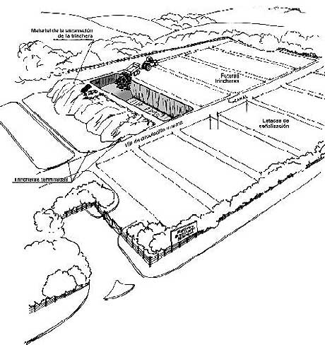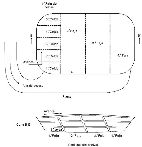 • El almacenamiento de material de cobertura sobre las celdas ya terminadas.
