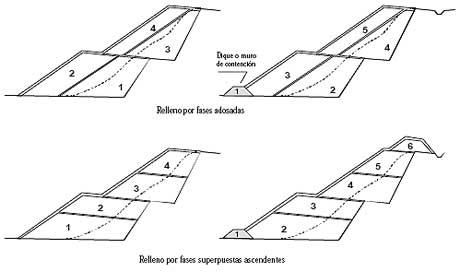 Secuencia de la construcción de terraplenes para el llenado del terreno