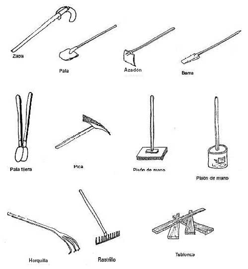La cantidad de estas herramientas está en función del número de trabajadores, y el de estos, a su vez, depende de la cantidad de RSM que se debe enterrar en el relleno.