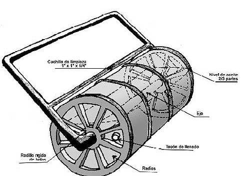 El equipo para operar un relleno sanitario manual se reduce a una serie de herramientas o utensilios de albañilería, tales como: carretillas de llanta neumática, palas, picos, azadones, barras, tijeras, pisones de madera, horquillas o rastrillos, zapas y un rodillo compactador (figuras 7.36 a 7.39).